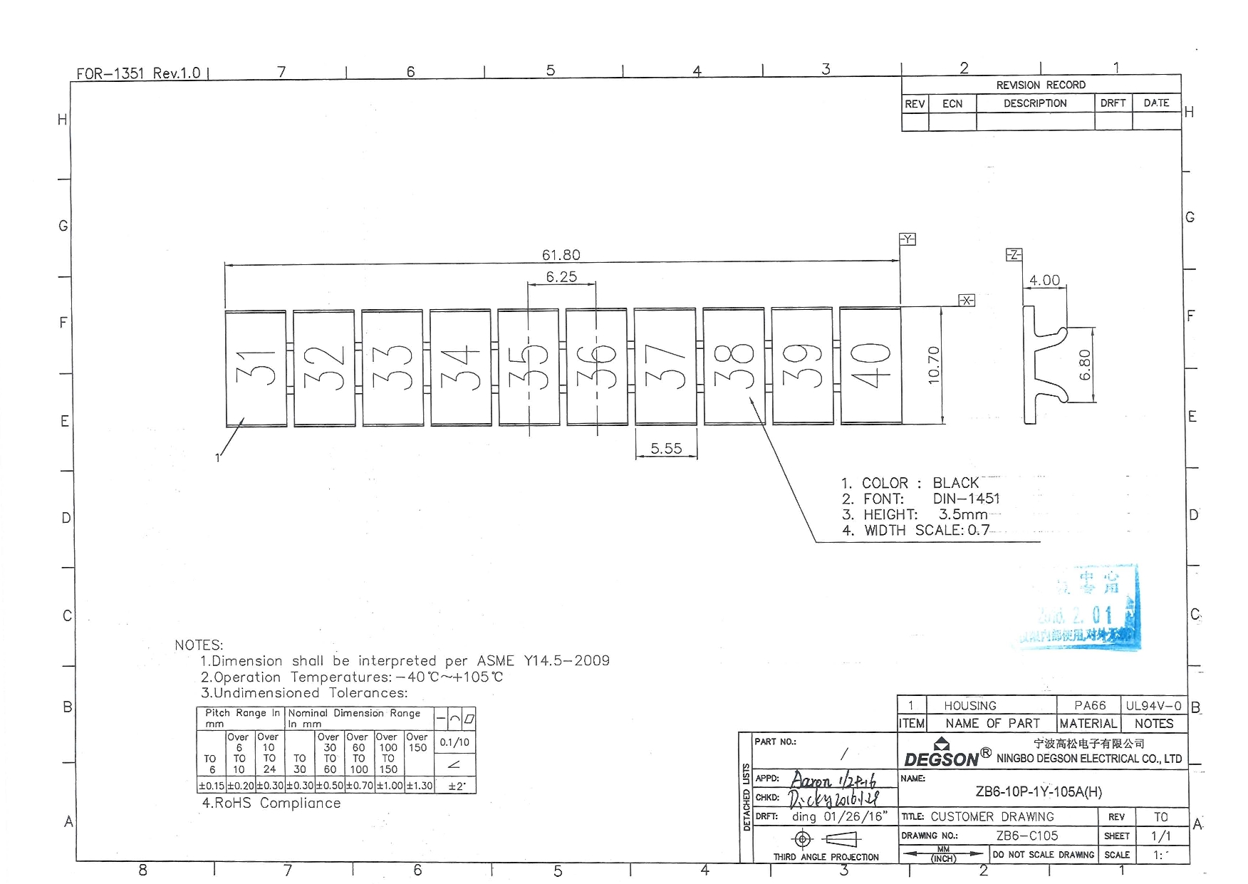 ZB6-10P-19-105Z(H), Маркировка, цифры вертик. 31-40,...