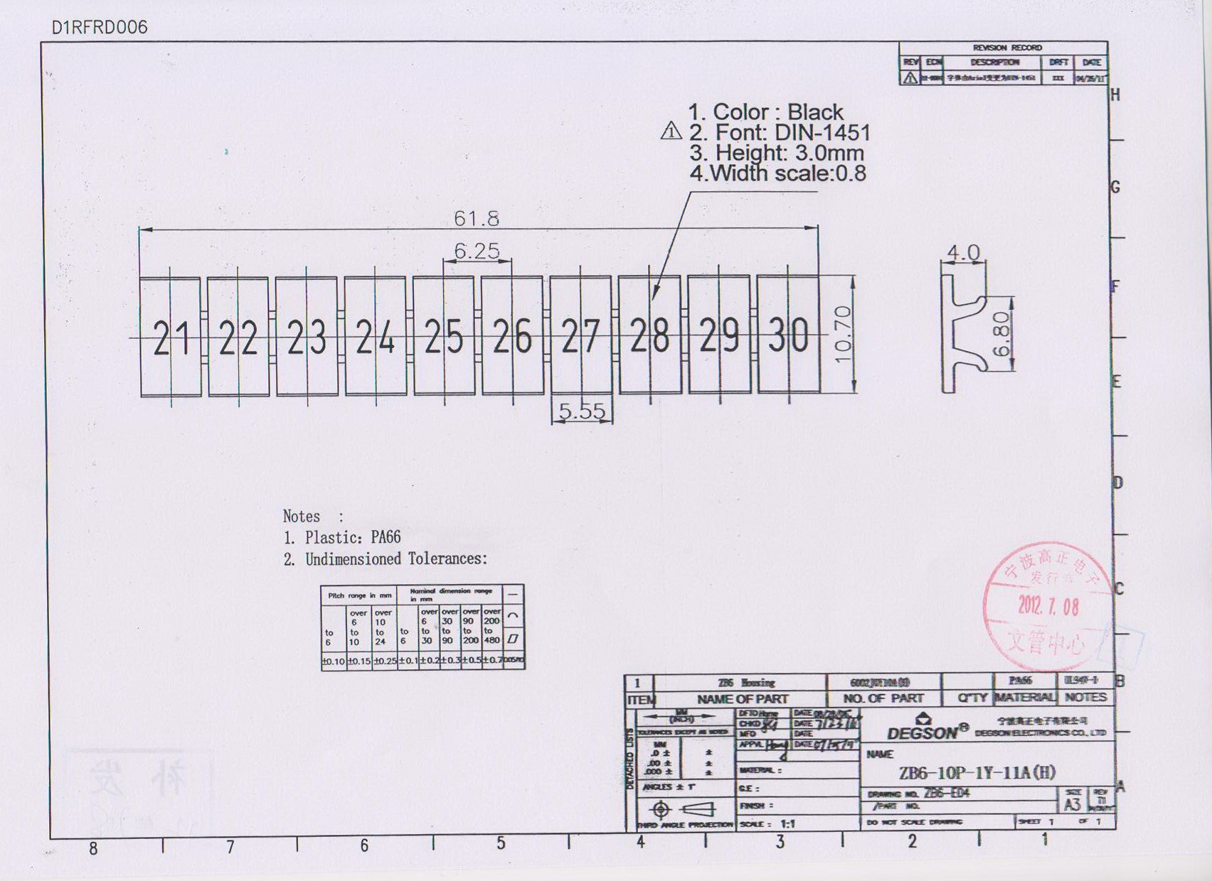 ZB6-10P-19-11Z(H), Маркировка, цифры гориз. 21-30,...