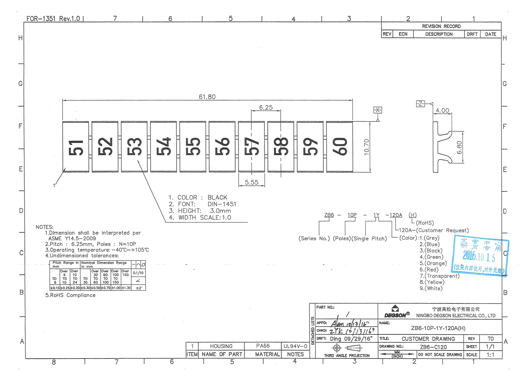 ZB6-10P-19-120Z(H), Маркировка, цифры вертик. 51-60,...