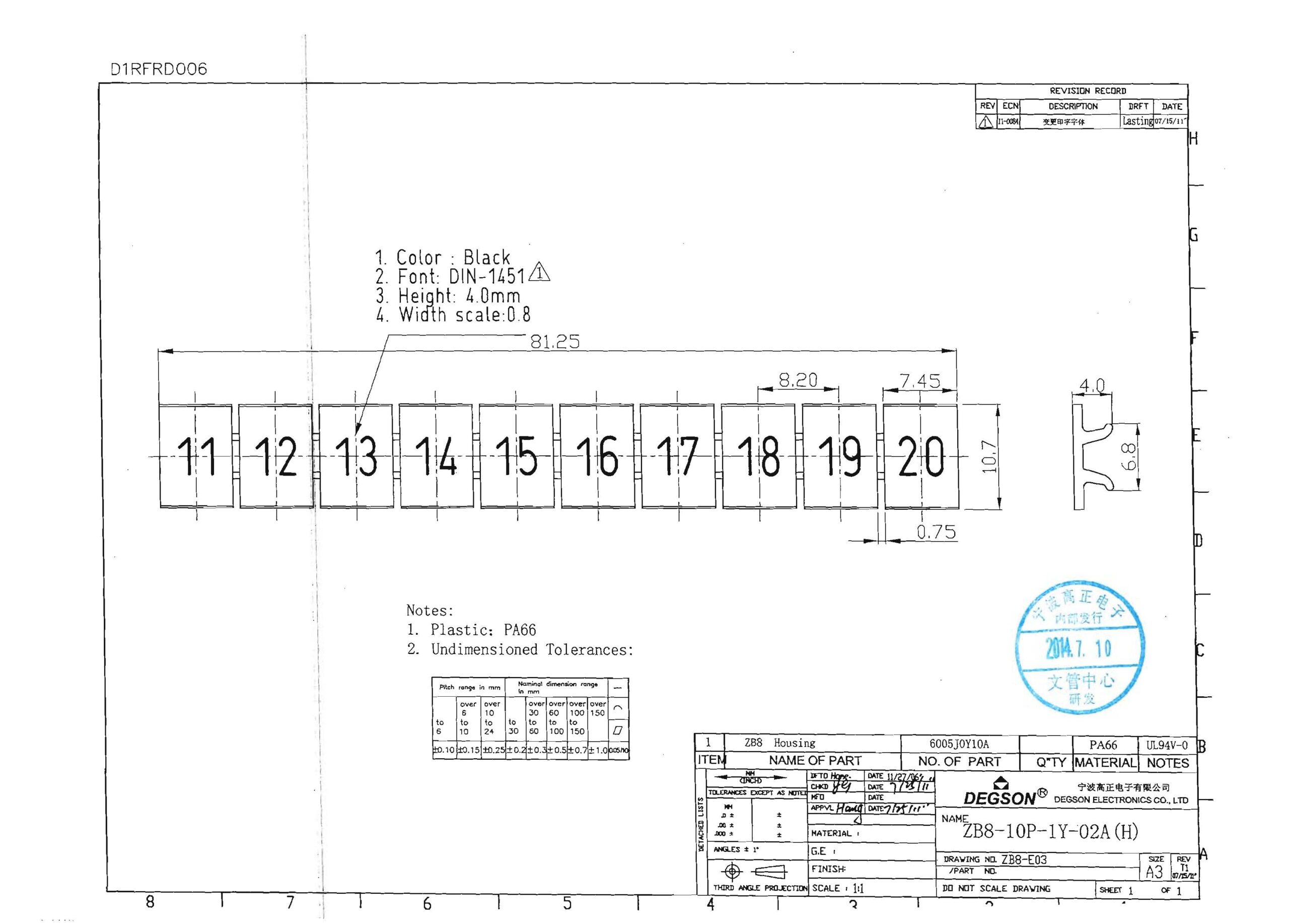ZB8-10P-19-02Z(H), Маркировка, цифры гориз. 11-20,...