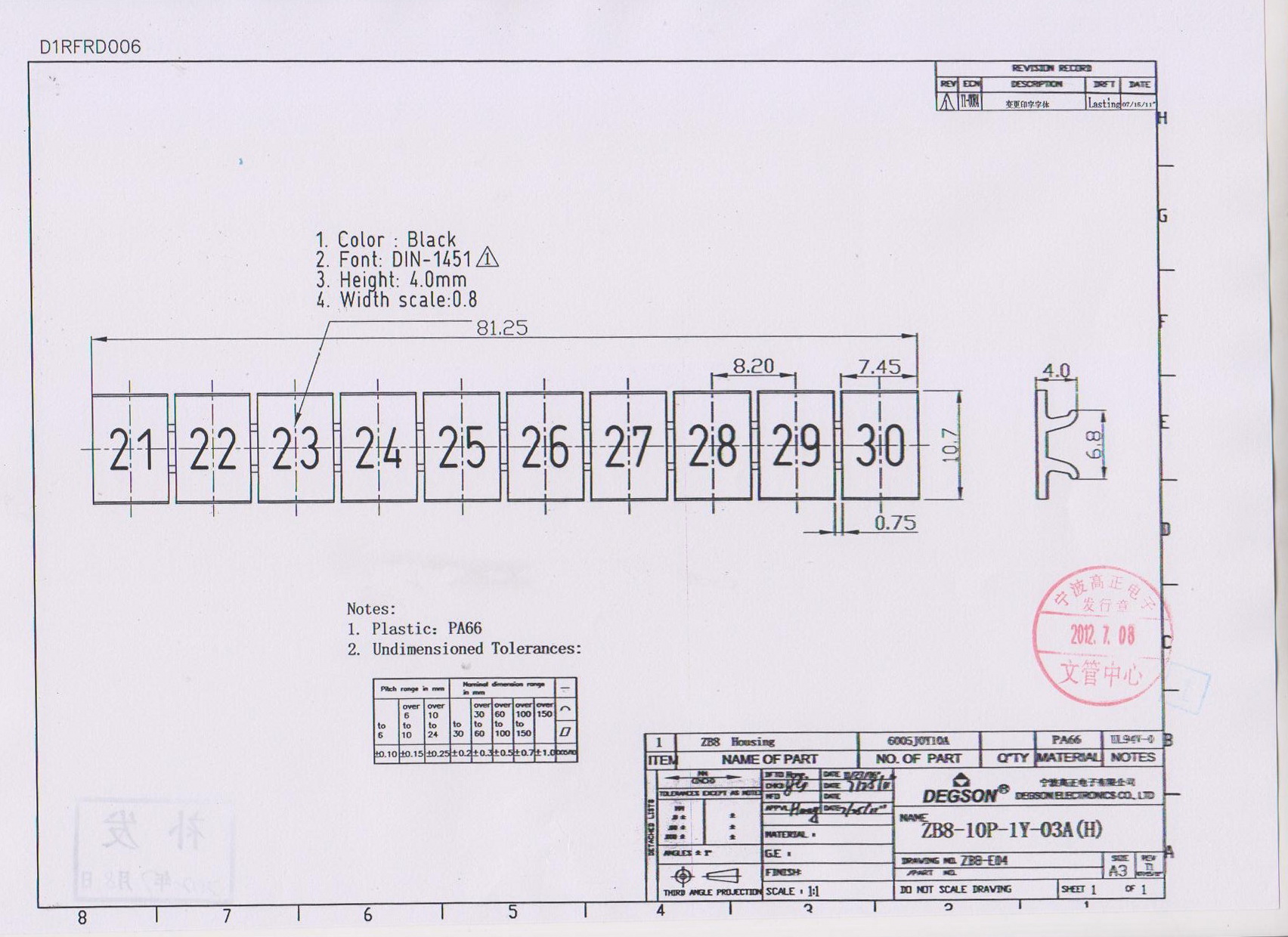 ZB8-10P-19-03Z(H), Маркировка, цифры гориз. 21-30,...