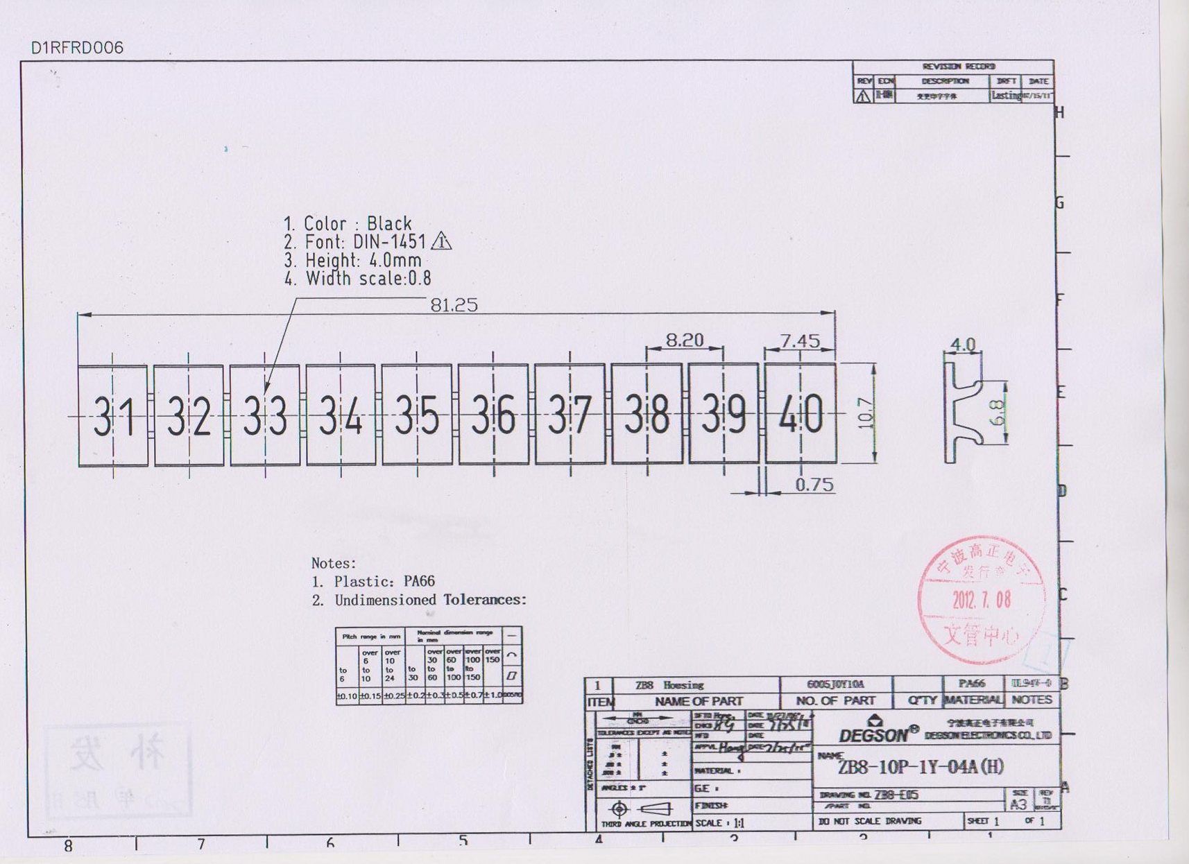 ZB8-10P-19-04Z(H), Маркировка, цифры гориз. 31-40,...