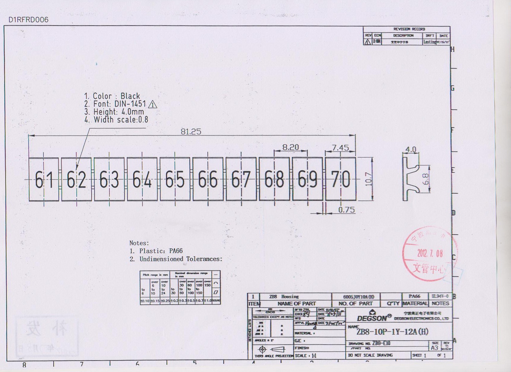 ZB8-10P-19-12Z(H), Маркировка, цифры гориз. 61-70,...