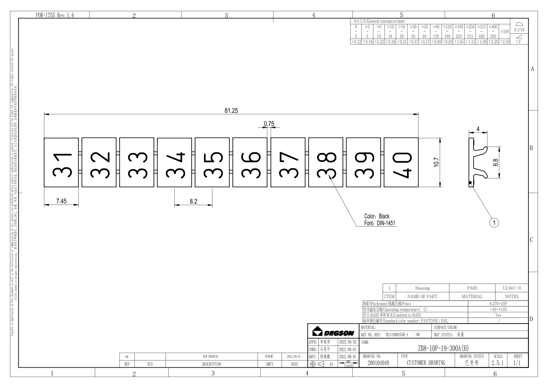 ZB8-10P-19-300Z(H), Маркировка, цифры вертик. 31-40,...